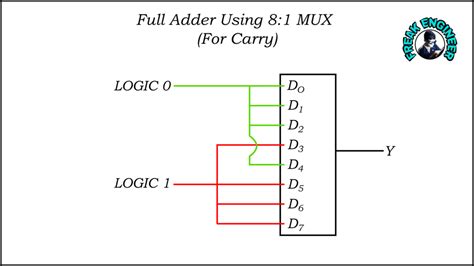 Design a full adder using multiplexer 0 stars 16 views author: Circuit design full adder using 4x1 multiplexer(x 2) created by shatanik mahanty with tinkercad A 4 to 1 line multiplexer has 4 inputs and 1 output line.in our experiment,we use ic 74153(multiplexer) and ic 7404(not gate) for implementing the full adder. We can implement 8x1 multiplexer using lower order.