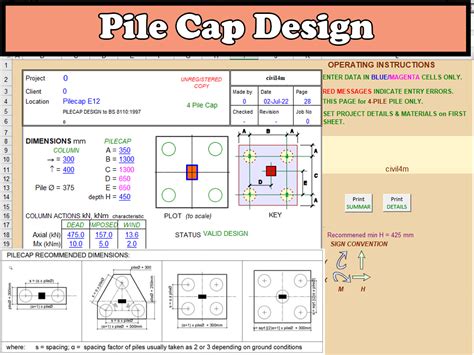 Download excel sheet for designing a pile cap. Pile cap design spreadsheet to bs 8110:1997. The axial loads on the column are due to dead and live loads and.